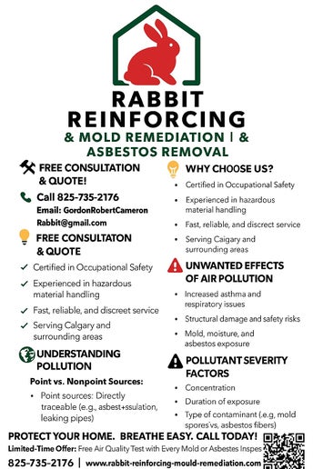 Rabbit Reinforcing & Mold Remediation - Asbestos abatement was founded with a mission to protect families and improve indoor health across Calgary. With years of hands-on experience in identifying, treating, and removing mold and asbestos hazards from homes and buildings.